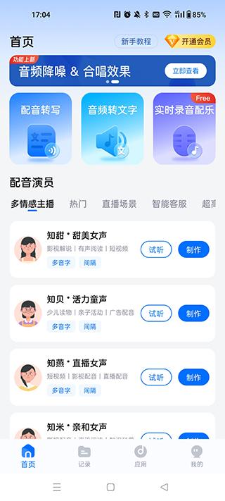 多方配音、智能阅读、对白配音、语音提词、录音翻译以及录制声音等