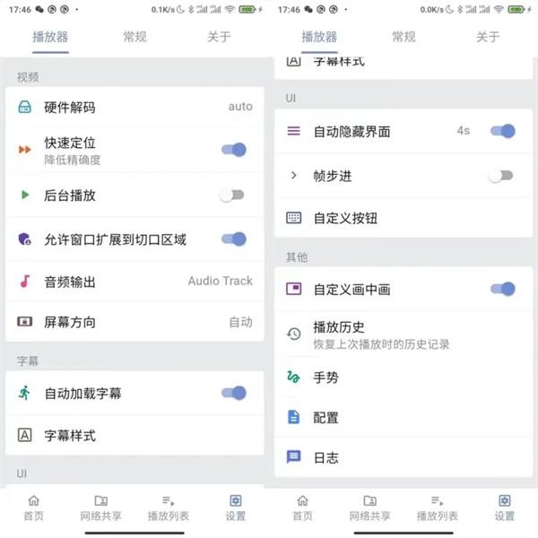 Reex 设置里面也很丰富,包括解码设置、快速定位、后台播放、音频输出、字幕自定义、手势设置等等。