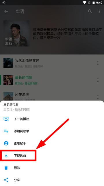 4、或者大家直接进入歌曲的播放页面,最下方也有下载功能。