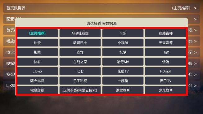 3、然后会有一个弹窗出现,这里全部都是各种数据源,大家遇到视频看不了、找不到自己想看的资源或者看不了直播的时候,可以来此页面更换数据源。