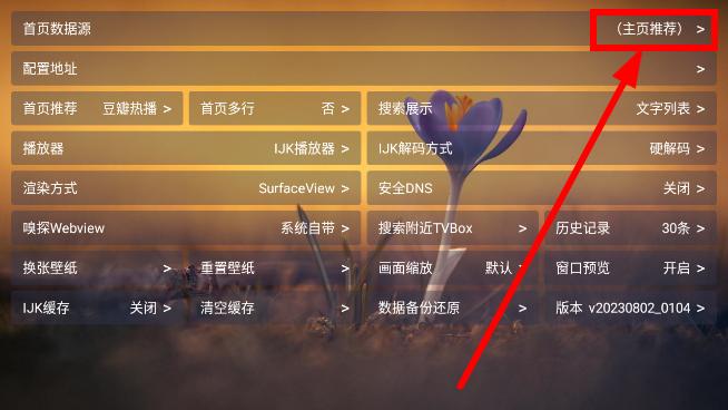 2、来到设置界面后,我们找到第一排的首页数据源,打开。