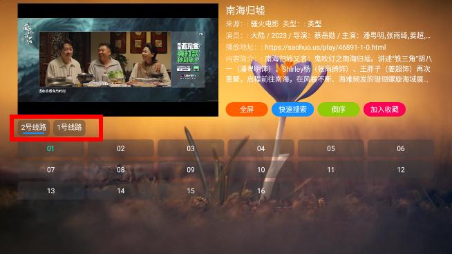 4、最后进入播放界面,如果视频加载不出来或者播放卡顿,可以更换线路,或者返回到上级界面选择另外的资源。