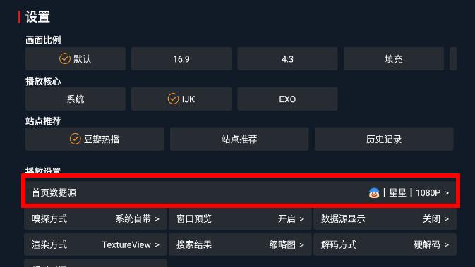 3、在设置界面我们可以找到首页数据源,点击便可以进行更换啦。