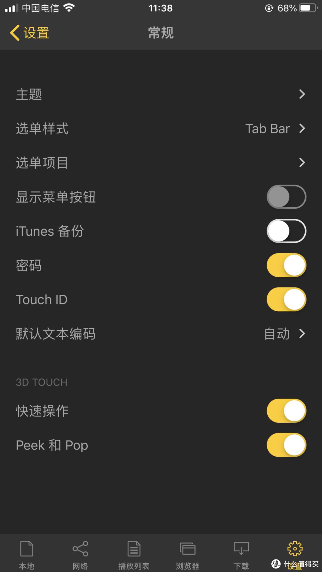 这里重点介绍一个功能,就是常规选项里Touch ID功能,这个功能有什么用呢,开启后只要打开这个软件,就必须进行指纹认证或者密码,否则无法进入