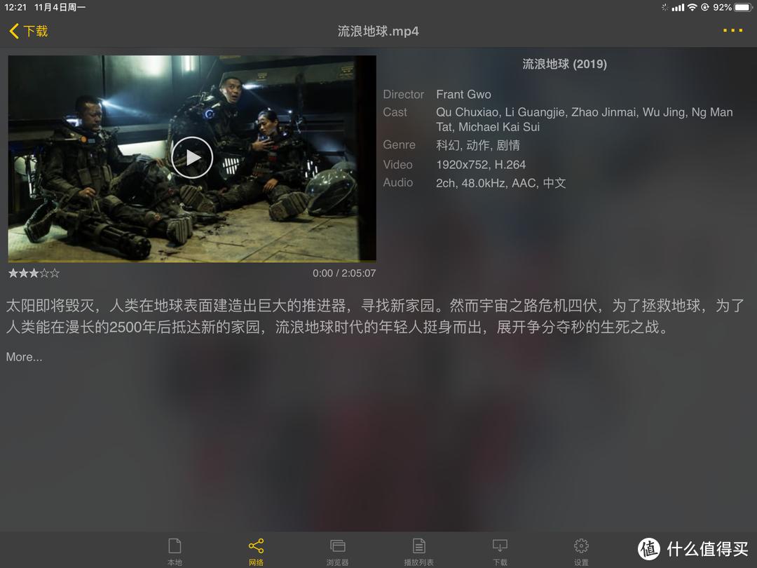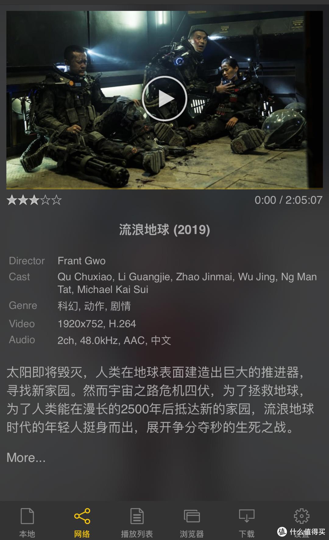 点击选择的影片不会直接播放,而是进入影片信息刮削器界面,可以看到影片简介和影片文件的信息参数
