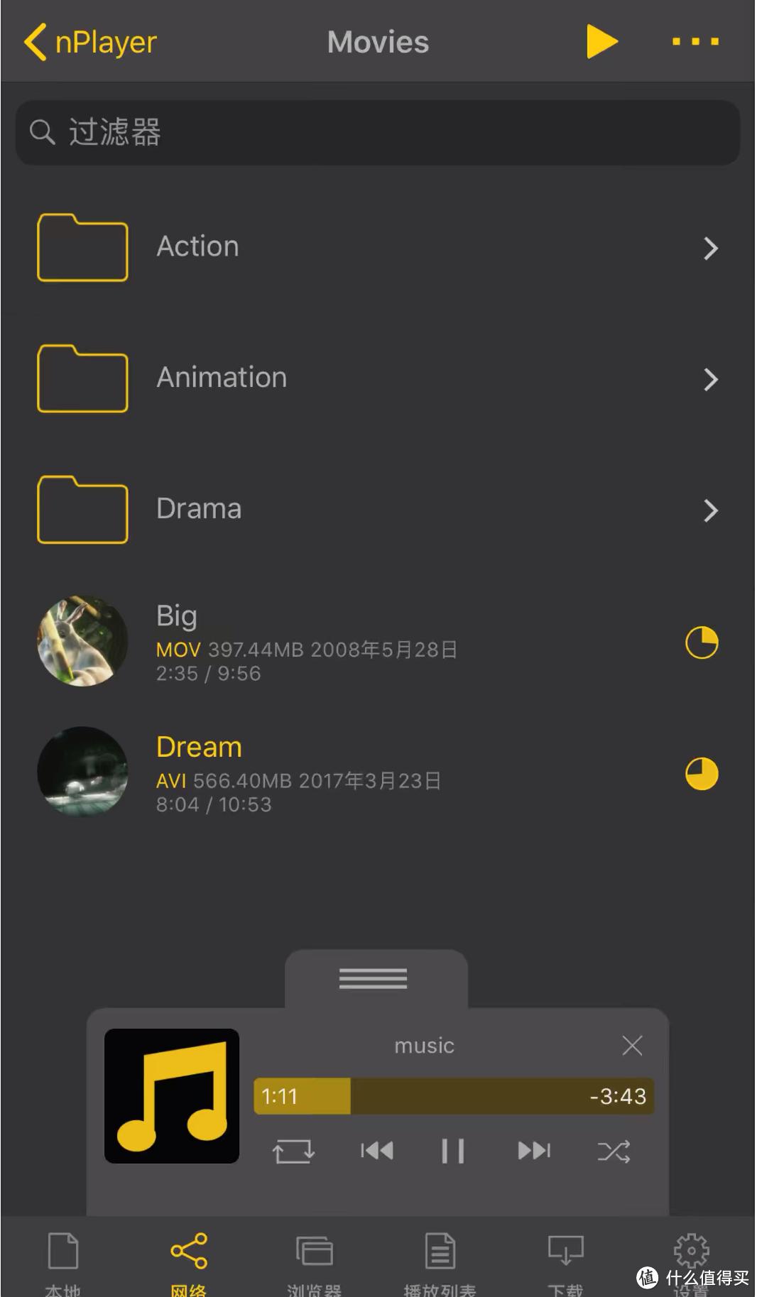 nPlayer 作为一个高清视频播放器,在解码播放能力,格式兼容性以及加载字幕等等功能上已经做到相当的不错了,而且支持 DTS-HD / Dolby AC3 也让它脱颖而出。再加上 SMB / FTP 等局域网文件浏览与播放的能力,任何格式的高清电影都不需转码直接通过 WiFi 无线播放,非常的方便实用。