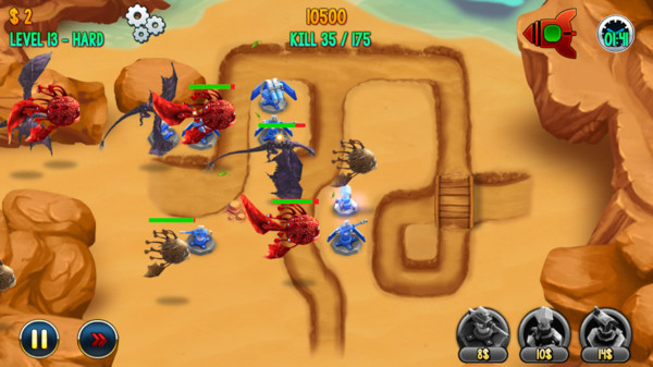 魔物塔防游戏安卓版是一款以对抗魔物题材的策略塔防类游戏,在这款游戏中,玩家们将会去和自己的对手魔物们展开战斗,用建筑防御塔的方式来抵挡这些可恨魔物们的进攻。Q萌的卡通游戏的绘图风格,多种不同风格的地图供您解锁。25张不同主题的地图,3种挑战极限的游戏形式,5种试图炸毁王国的嘘声,丰富的清魔法技术,以及15个关卡来抵御弱小的敌人。